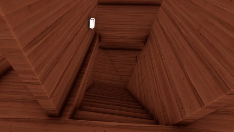 1・2枚目は断面図です。体を傾斜に合わせて歩いたら上手く進んだので、きっと階段と床は斜めになっているはず。