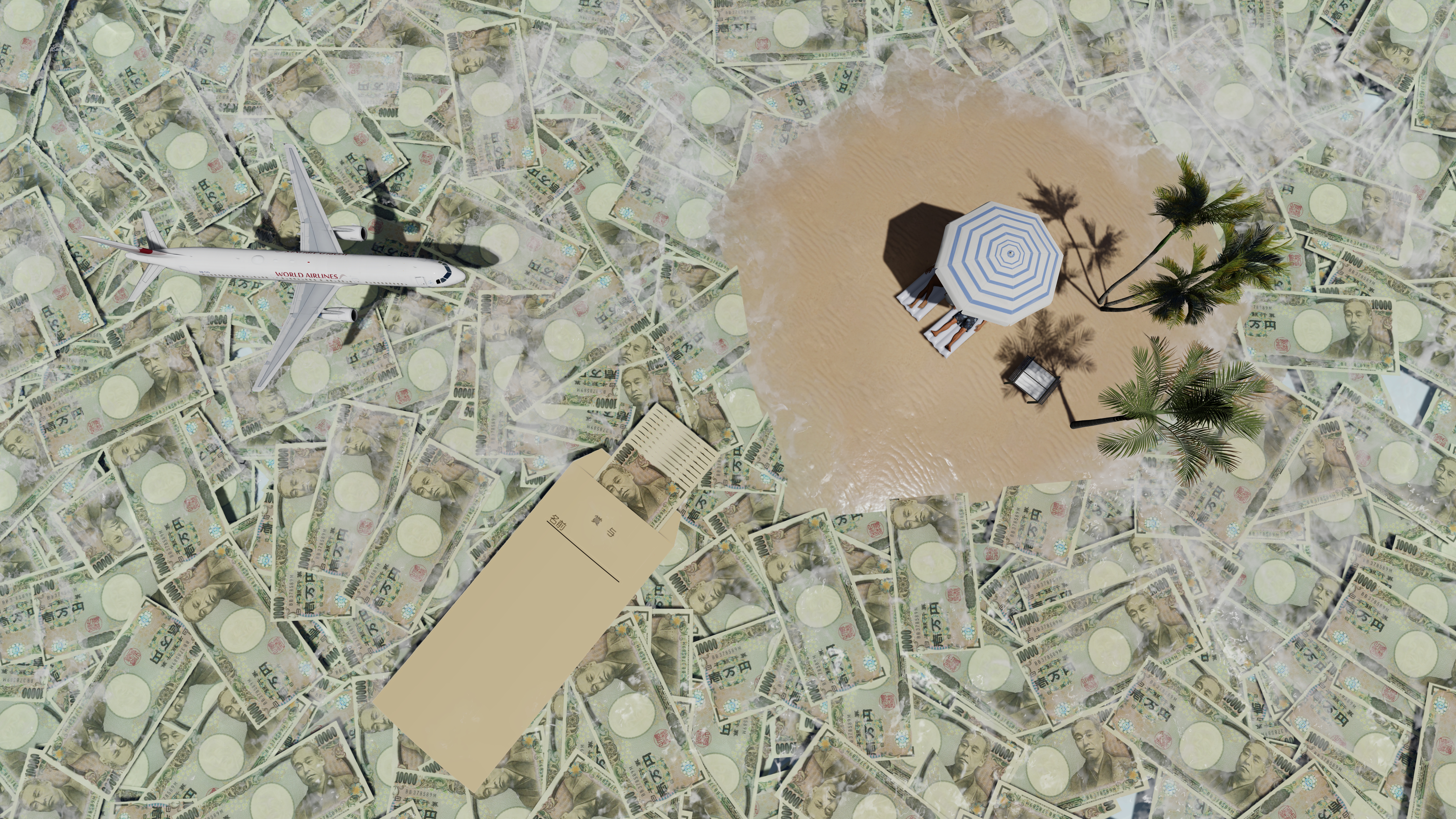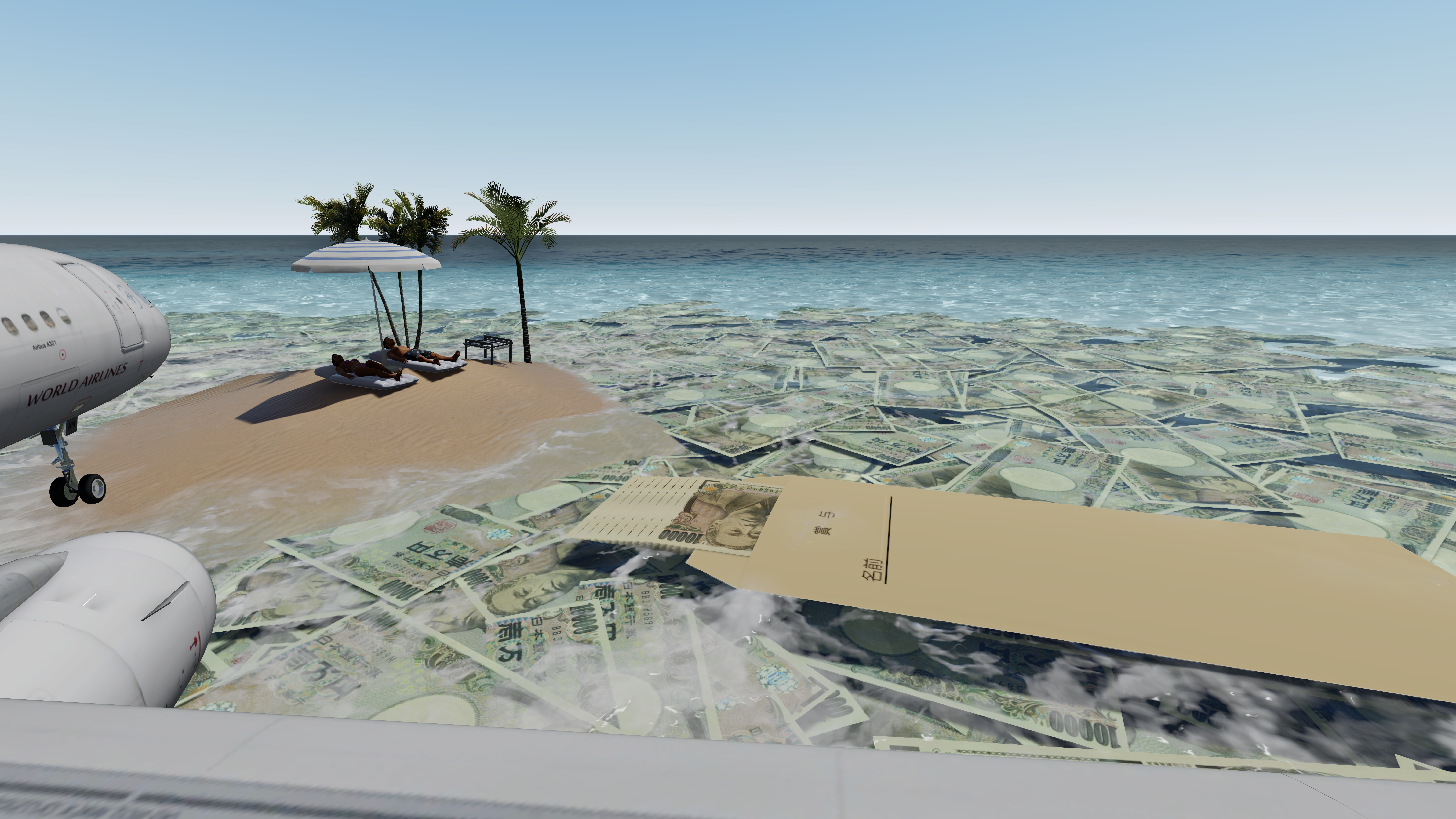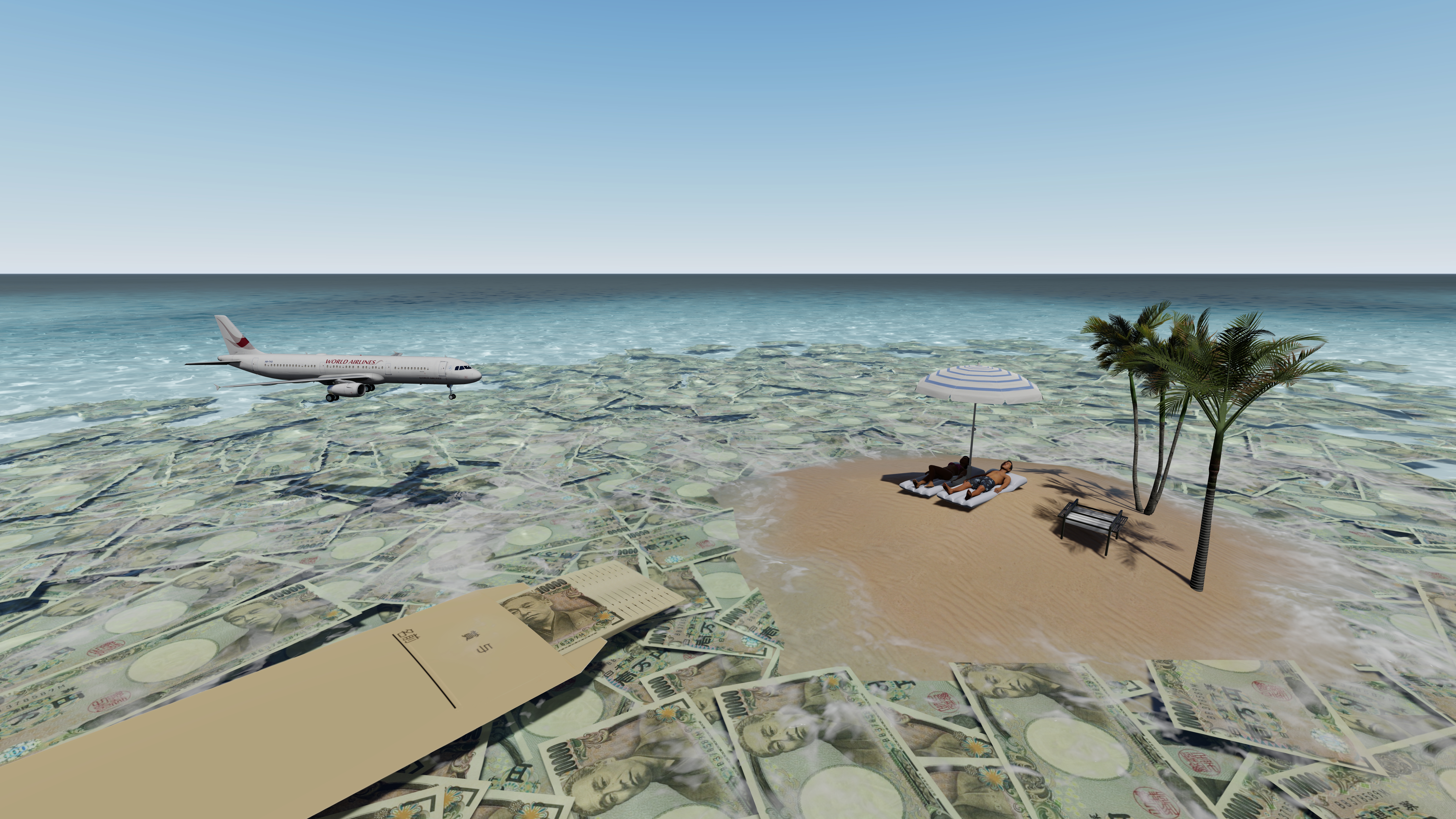 本日のイラスト制作 テーマ『賞与をもらって海外でバカンス』