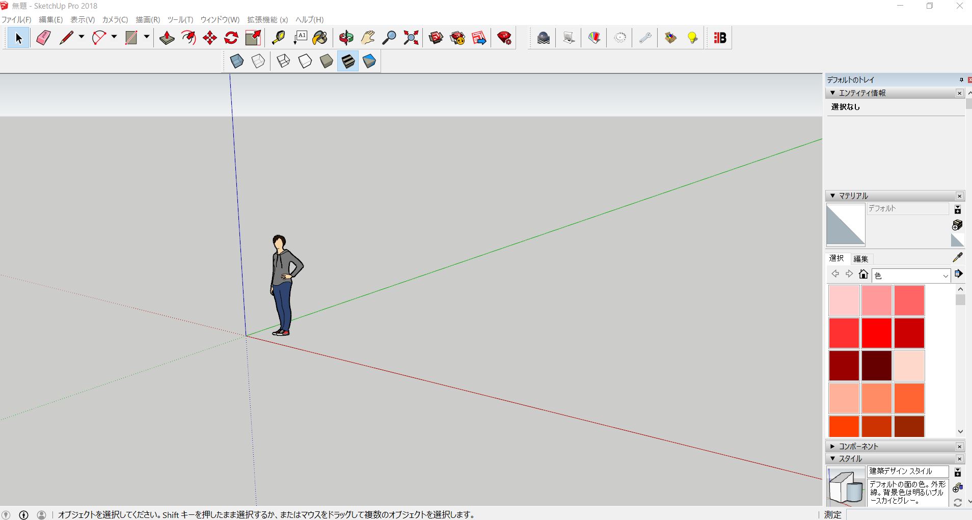 スケッチアップは、初期設定ではコマンドの数が他の3Dソフトに比べると少なくて、コマンドボタンも大きいので分かりやすくなっている。