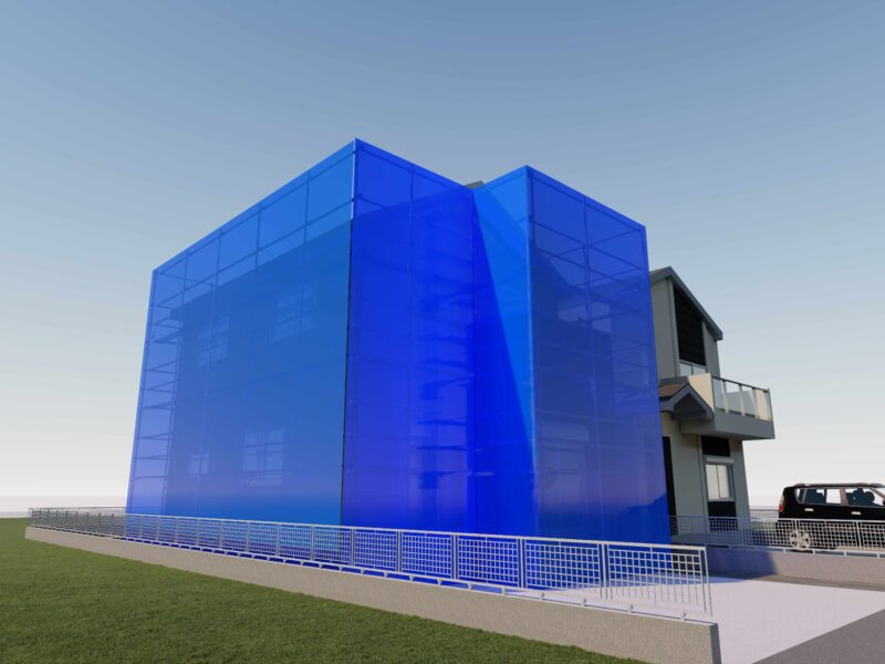 戸建住宅の工事用足場をイメージしたイラストを制作しました メッシュシートの透き通った感じを表現するのが難しかったです