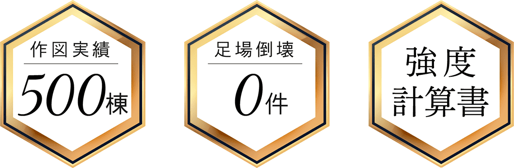 仮設計画図を作図する際に、仮設計算も併用して作業している為、強度が不足していないか確認しながら作業します。その為、創業後に約500現場(2023年11月時点)を担当してきましたが、足場の倒壊は起きておりません。この部分は作図しか出来ない業者には無い信頼して頂けるサービスです。
